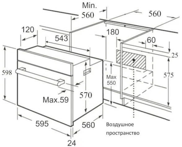 Габариты духовки (ВxШxГ) (см): 59.3x59.7x56