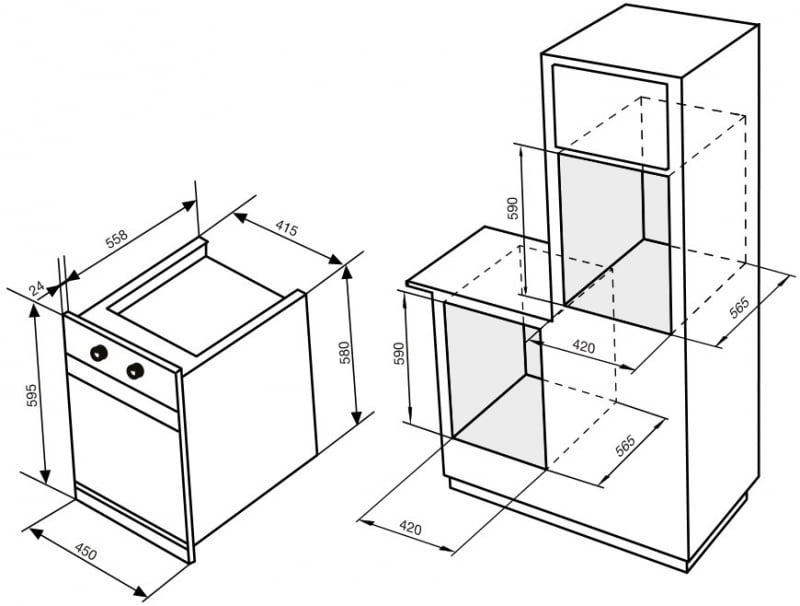 Габариты для встраивания (ВхШхГ)    59х42х56,5 см.