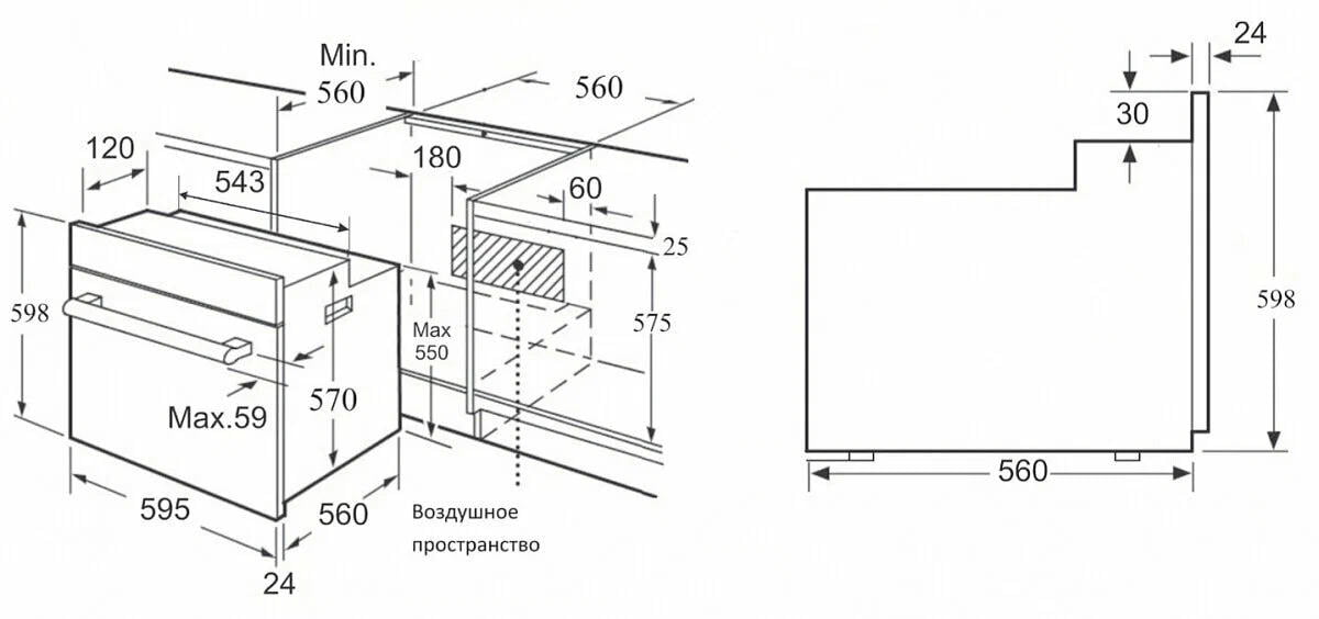 Размеры встраивания (ВхШхГ) (мм): 590-600х560х565