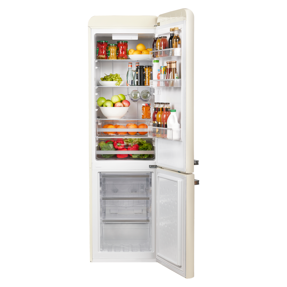 Продуманная организация пространства позволяет легко разместить недельные запасы. Внутри — полки, боковые секции и выдвижные ящики, а полезный объём 250 л обеспечивает комфортное хранение без компромиссов по порядку и доступу.