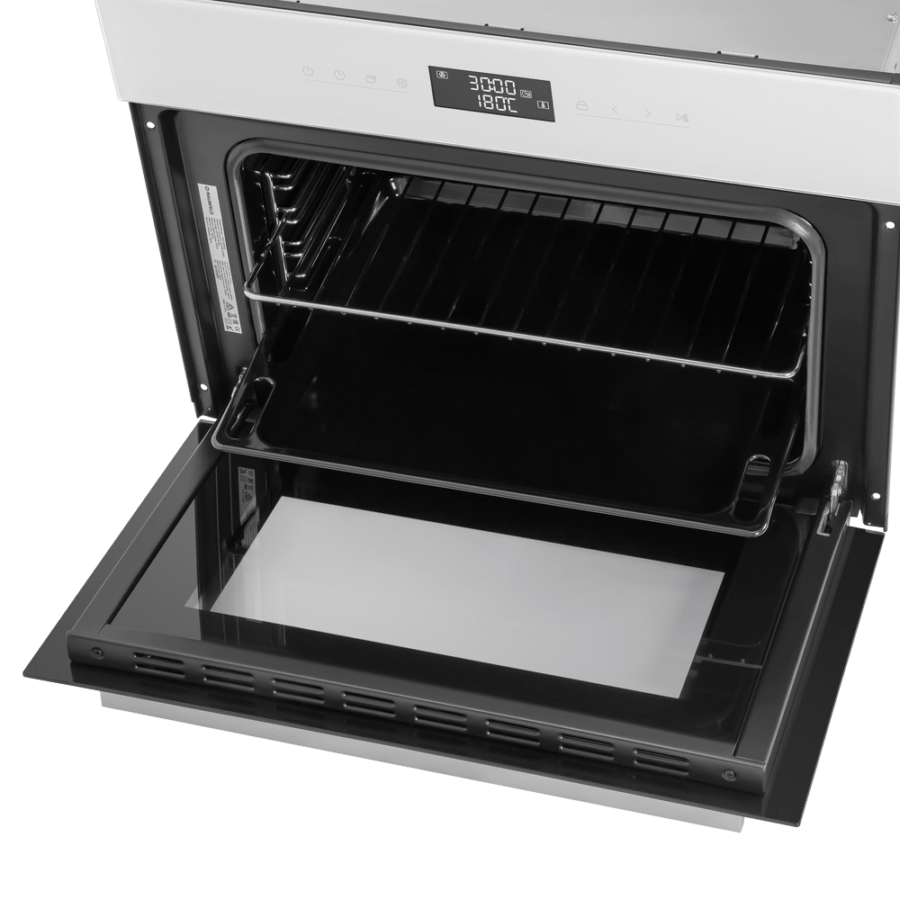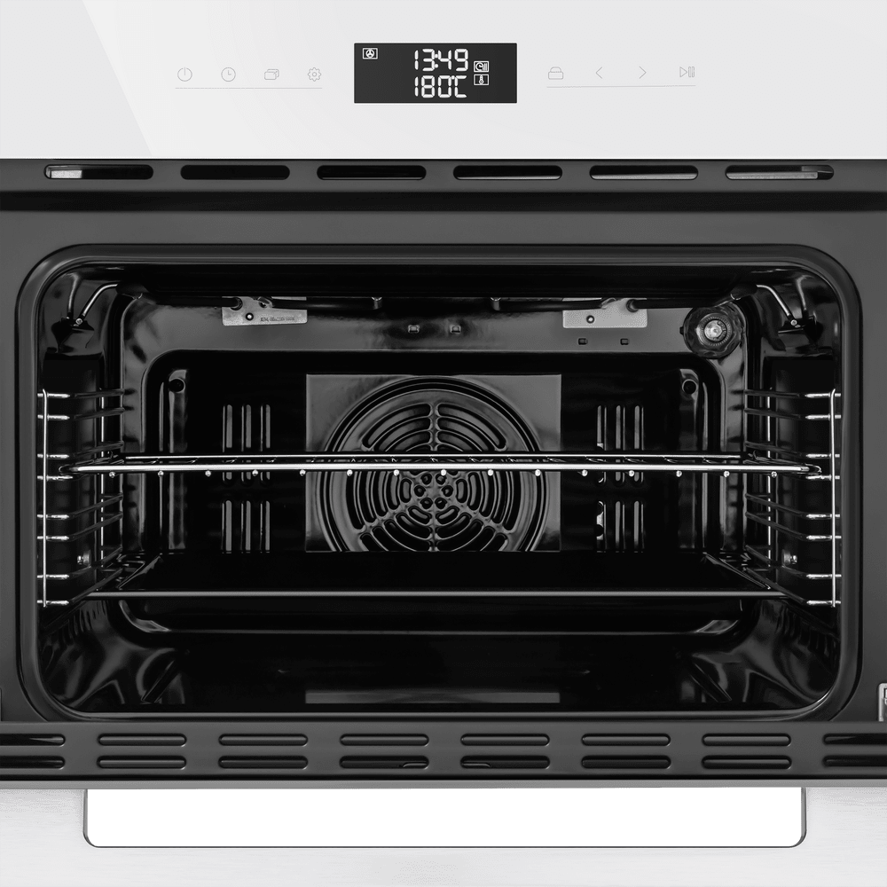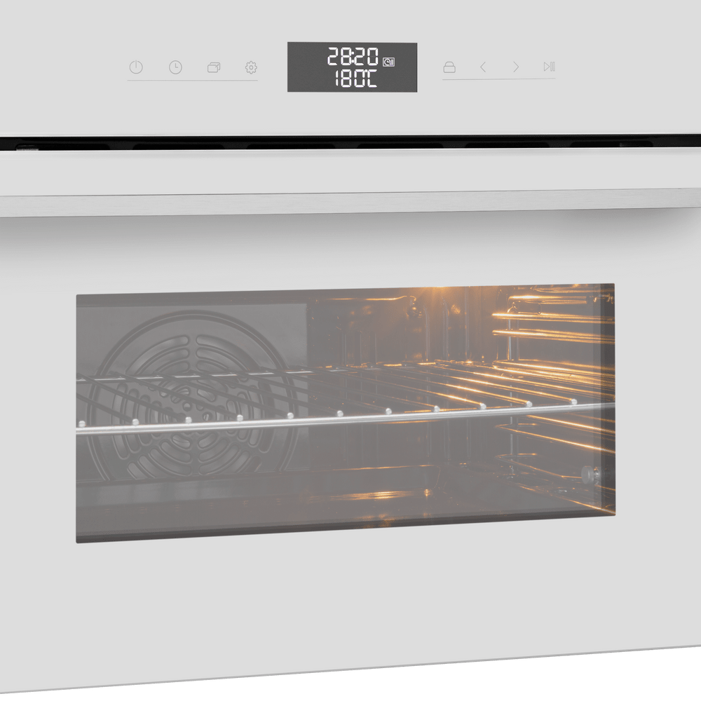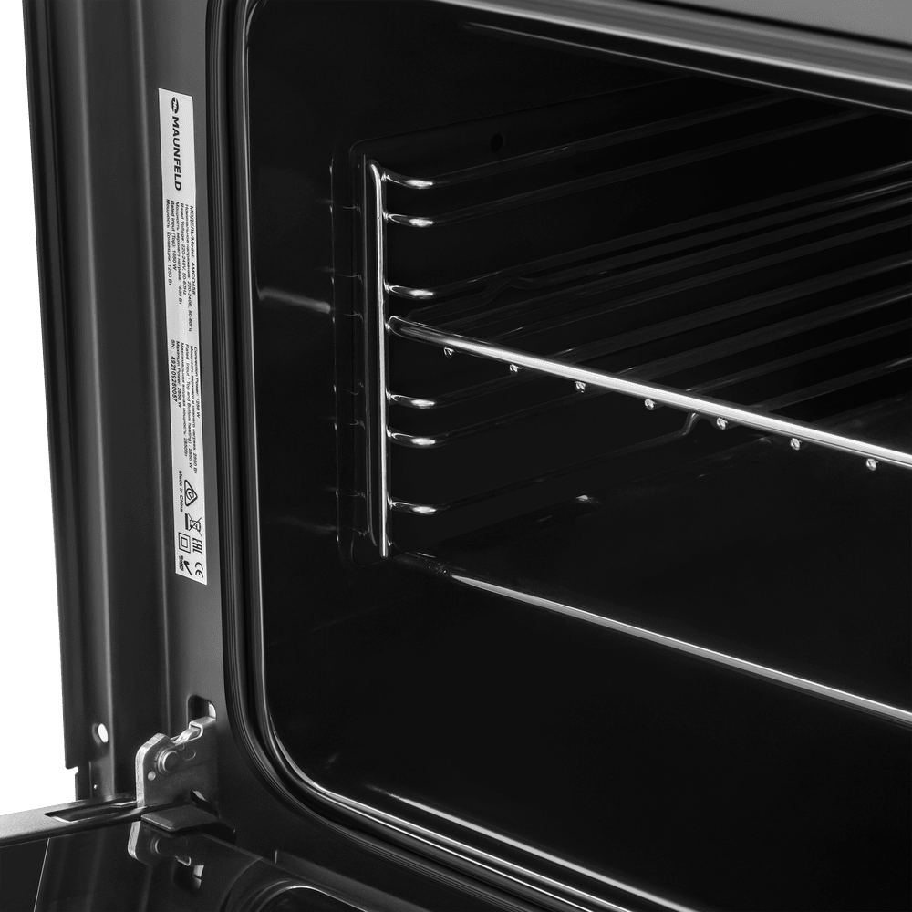 О чистоте заботится каталитическая очистка: специальные панели ускоряют разложение жировых загрязнений, заметно сокращая время на уход. Яркое внутреннее освещение позволяет контролировать готовность блюда, не открывая дверцу, а лаконичный фасад из жаропрочного стекла с цельнометаллической ручкой подчёркивает премиальный характер модели.