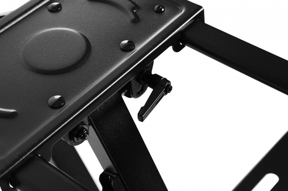 Поскольку конструкция имеет универсальный черный цвет, то сможет гармонично вписаться практически в любой интерьер. Она предназначается для больших моделей, диагональ экрана которых колеблется в пределах 37-90 дюймов, а максимальный вес равен целых 75 кг. Кронштейн позволяет легким движением руки поворачивать телевизор на 60 градусов в любую из сторон.