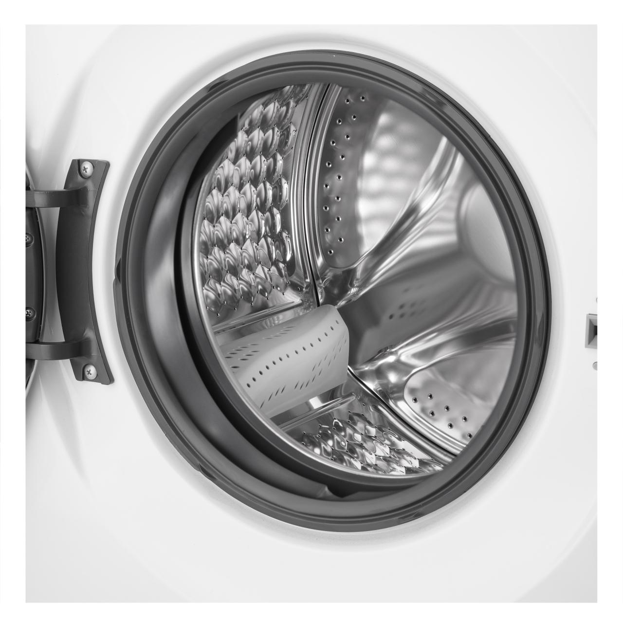 Модель оснащена 12 программами, включая режимы с паром, экспресс-стирку, программы для детской одежды, постельного белья и деликатных тканей. Дополнительно предусмотрена функция стирки с дезинфекцией, а также удобный режим «Стирка + сушка», который экономит время. Сенсорное Full Touch управление обеспечивает лёгкость в использовании, а функция отложенного старта до 24 часов позволяет запускать цикл в удобное время.