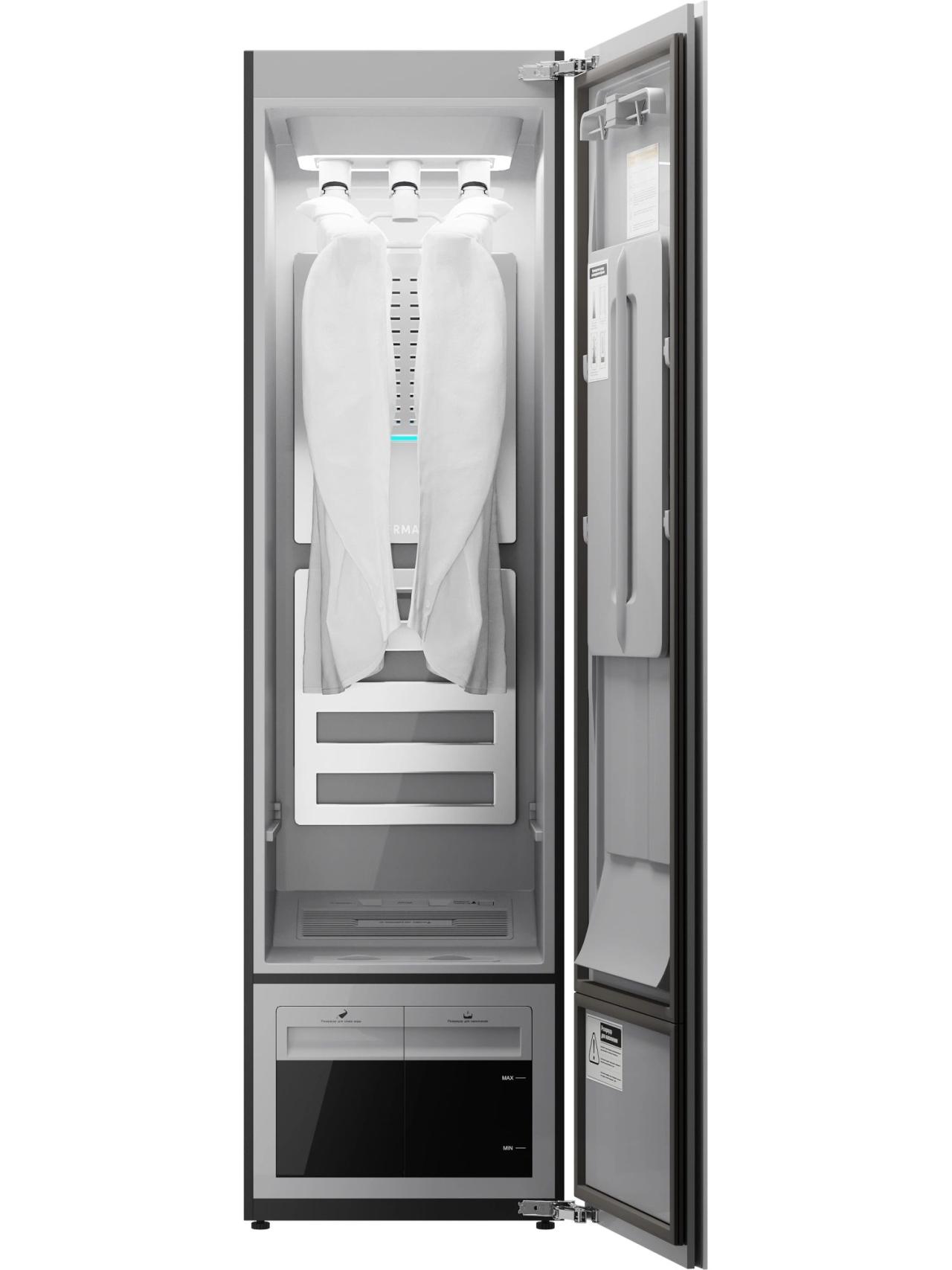 За гигиеническую чистоту отвечает комплекс технологий: плазменная стерилизация в сочетании с паром помогает поддерживать свежесть и порядок, что особенно ценно для семей с детьми и аллергиков. А конденсационная сушка с тепловым насосом бережно доводит вещи до готовности без пересушивания и жесткости тканей.
