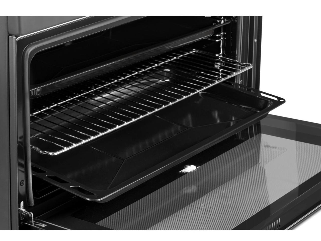 Духовой шкаф рассчитан на объем духовки 110 л, поэтому легко справится с крупными противнями, запеканием птицы целиком или несколькими блюдами сразу. Два режима нагрева — нижний и верхний (в том числе для эффекта гриля) — расширяют кулинарные сценарии.