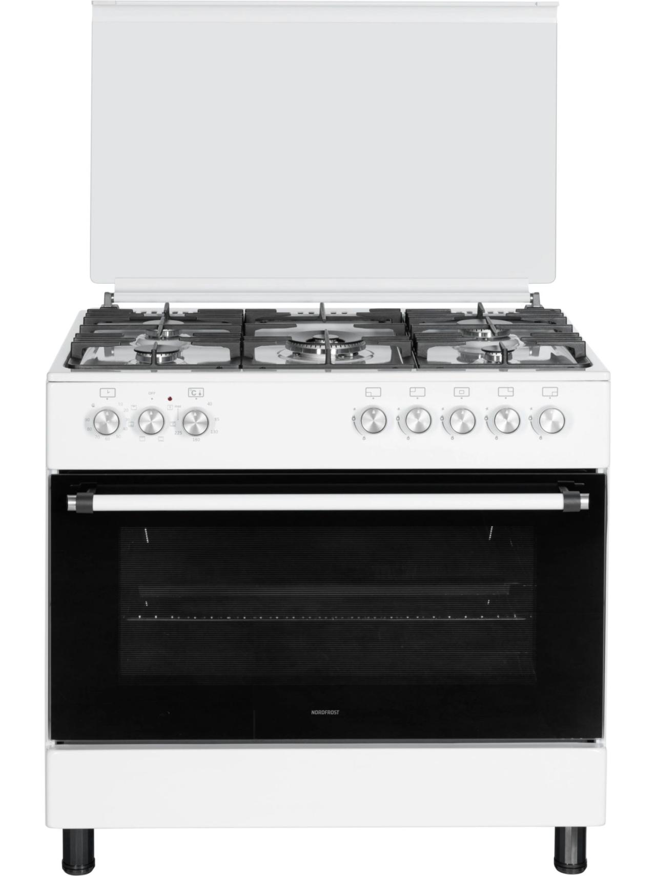 Выполненная в лаконичном стиле широкая газоэлектрическая плита NORDFROST GE 9062 W оснащена духовкой объемом 110 литров и варочной поверхностью на 5 газовых конфорок. Модель позволяет готовить увеличенное количество блюд одновременно, что актуально для большой семьи.