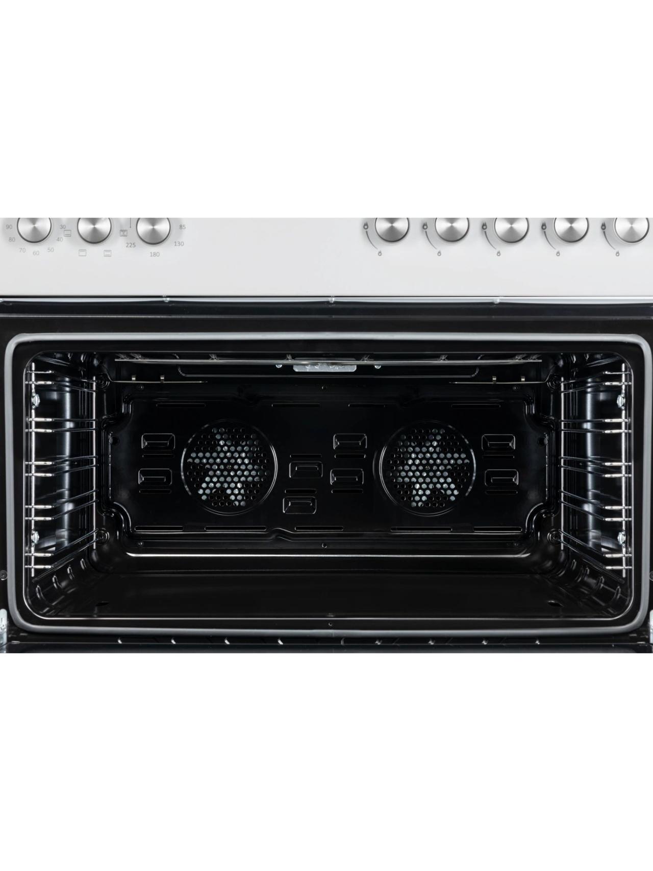 У электрического духового шкафа предусмотрено 6 режимов работы: «разморозка», «нижний нагрев + верхний нагрев + конвекция», «нижний нагрев + верхний нагрев», «верхний нагрев + нижний нагрев + электрогриль». Зона оснащена 2 вентиляторами конвекции, которые прогревают циркулирующий воздух и обеспечивают равномерное приготовление блюда.