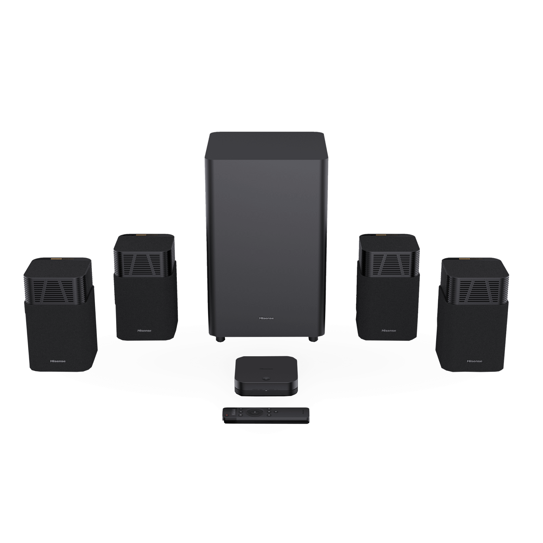 Удобство — в мелочах: калибровка под помещение, управление одним пультом с ТВ Hisense, множество проводных и беспроводных подключений. Комплект легко вписывается в интерьер и поддерживает настенный монтаж для аккуратной инсталляции.