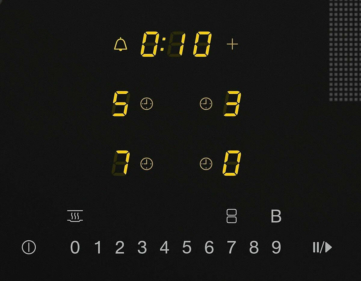 Сенсорное управление максимально упрощает управление устройством. Оно выполнено в виде слайдера для каждой из конфорок и помогает быстро установить нужную мощность или включить полезные функции. Вы без труда сможете установить 1из 9 мощностей конфорки. Выбранные настройки отображаются на цифровом дисплее поверхности. Автоматическое отключение сработает, если в процессе работы конфорка нагревается до критических температур. С такой функцией Вы никогда не столкнетесь с перегревом.