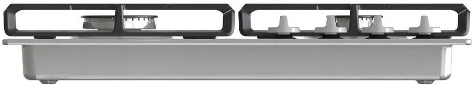 Варочная панель изготовлена из нержавеющей стали с серой фурнитурой. Чтобы поддерживать привлекательный внешний вид, поверхность покрыта составом XtraSurface. Он не даёт оставлять царапины и следы от пальцев. Эргономичные рукояти позволяют зажечь горелку одной рукой. Просто вдавите регулятор и поверните. Через 3–5 секунд после щелчков появится огонь. Конструкция BigSurface предполагает увеличенное расстояние между зонами нагрева. Поэтому можно использовать сразу все конфорки - и посуда удобно разместится.