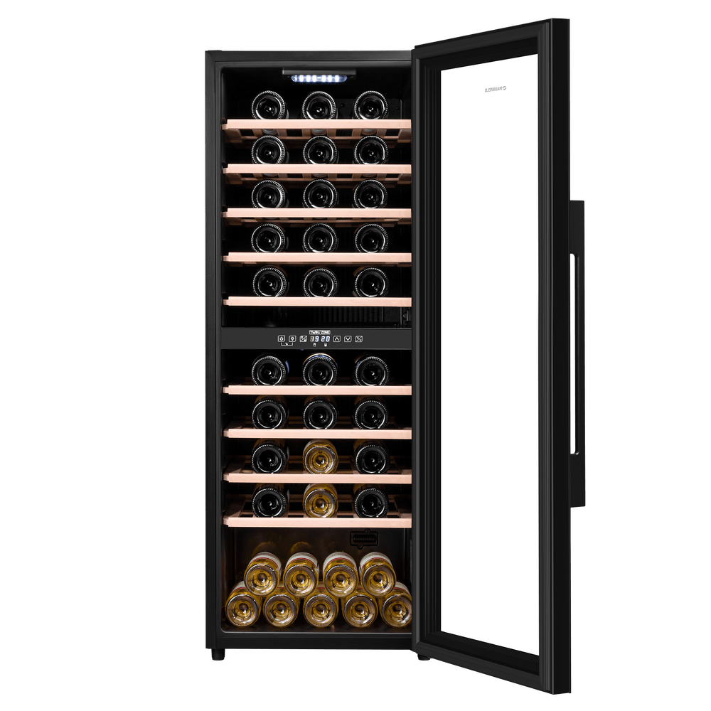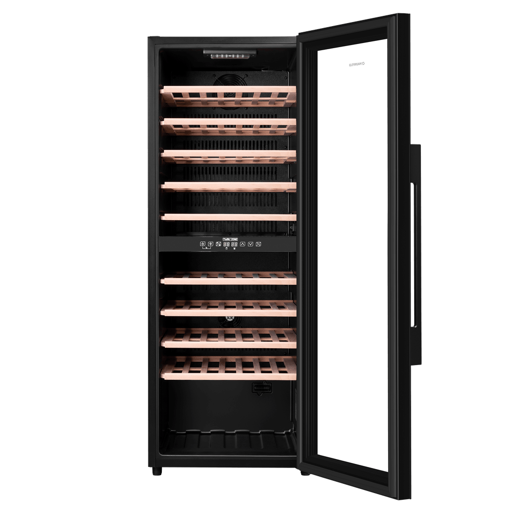Модель вмещает до 77 бутылок и поддерживает широкий температурный диапазон от 5 °C до 22 °C. Это позволяет хранить красные, белые и игристые вина в оптимальных условиях, обеспечивая их правильное созревание и сохранение вкуса.