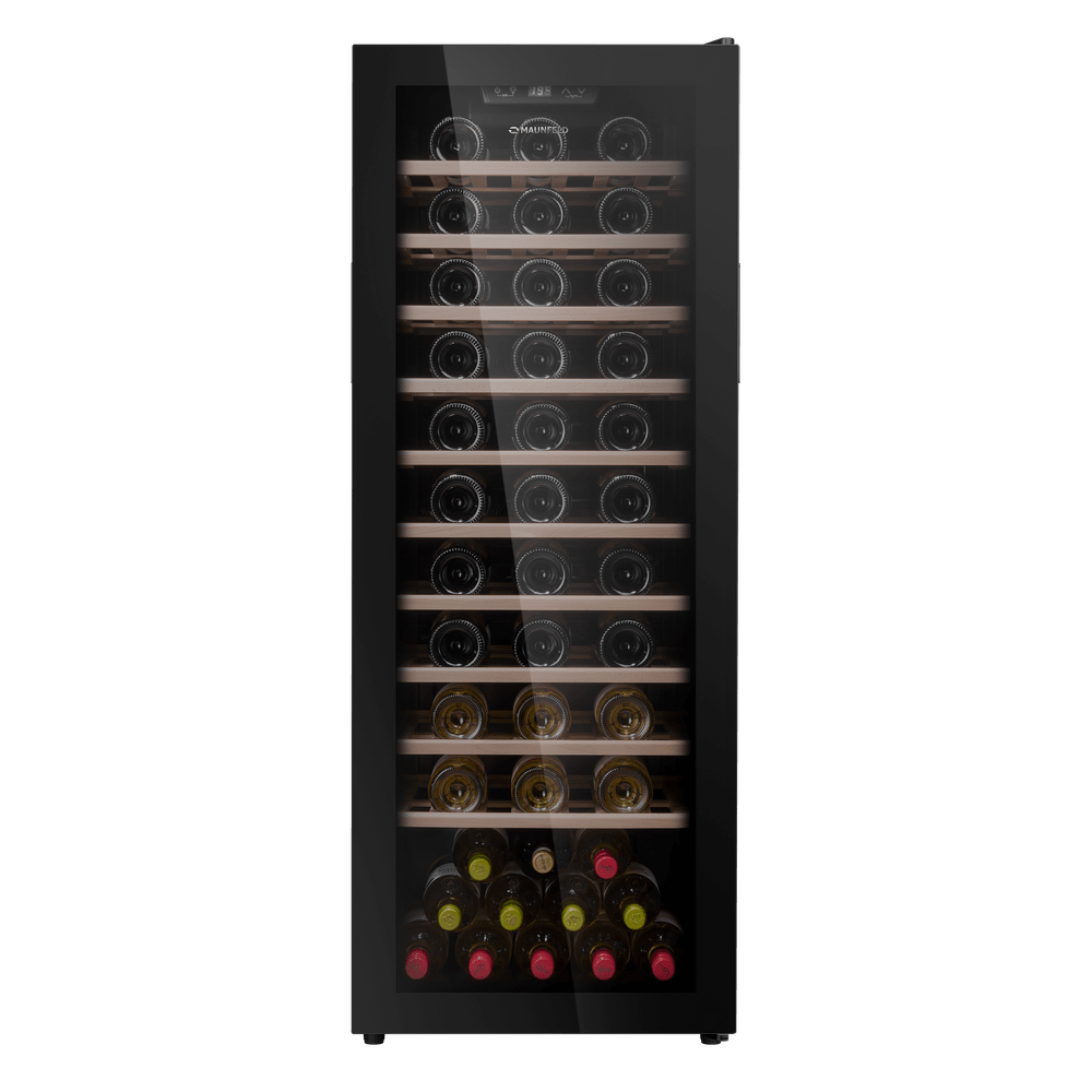 Продуманная компоновка обеспечивает вместимость до 84 бутылок: 10 прочных полок из массива бука удобно размещают бутылки, при необходимости полку можно извлечь и переорганизовать пространство. Светодиодная подсветка мягко подсвечивает этикетки.