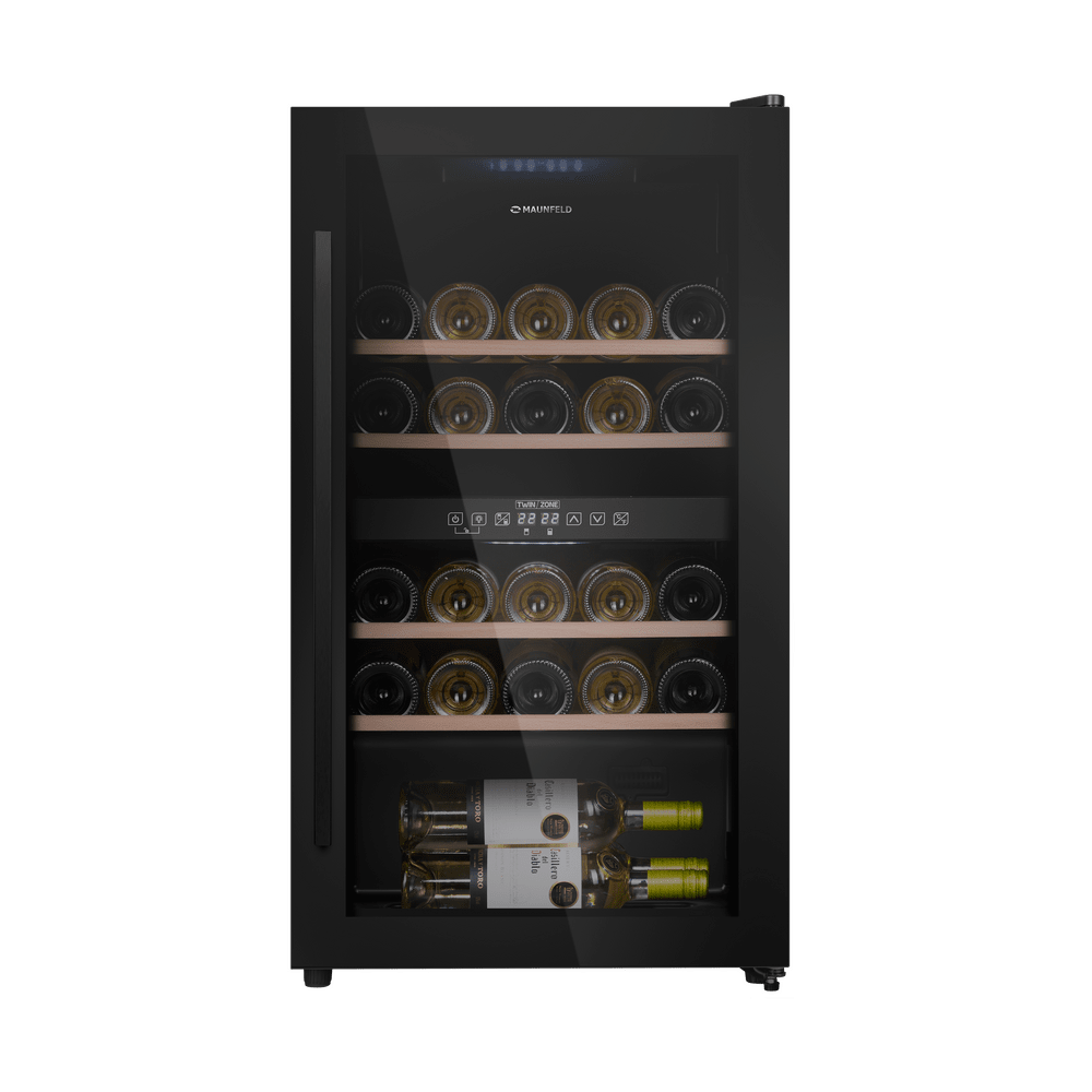 Современный винный шкаф MAUNFELD MFWC-85D28 создаёт идеальные условия для домашнего хранения коллекции. Две независимые температурные зоны позволяют одновременно выдерживать красные, белые и игристые вина, точно подстраивая режим под каждый тип напитка.