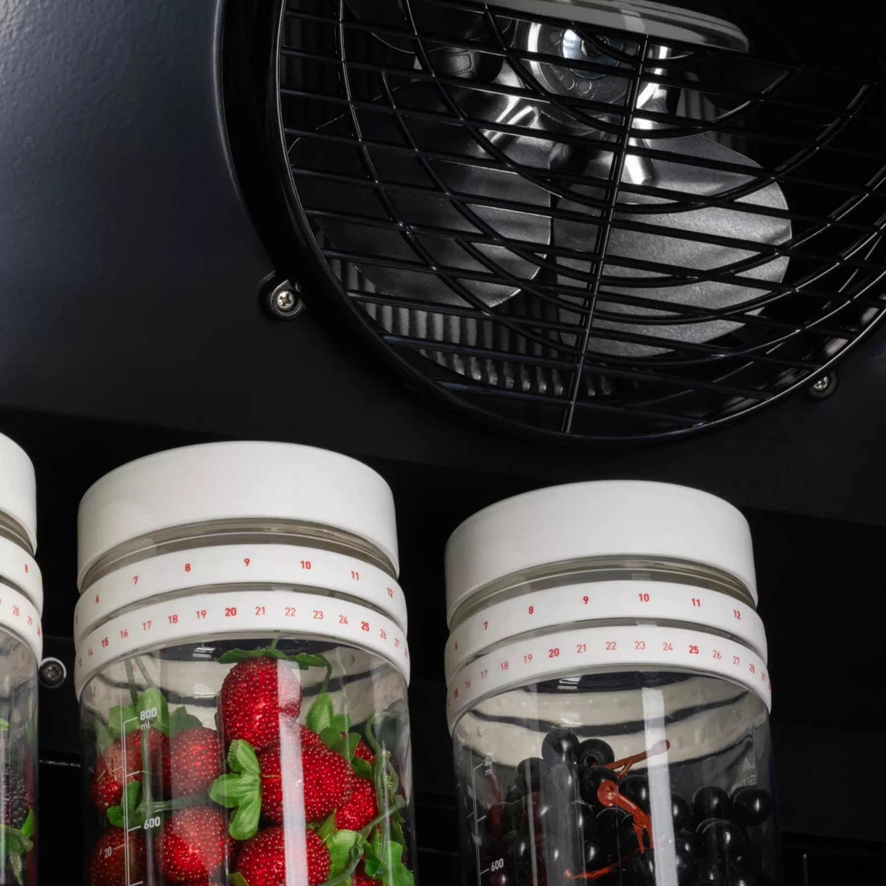 Дверца: из трёхслойного закалённого стекла с ультратонкой рамой (обеспечивает хороший обзор и минимизирует потери холода).