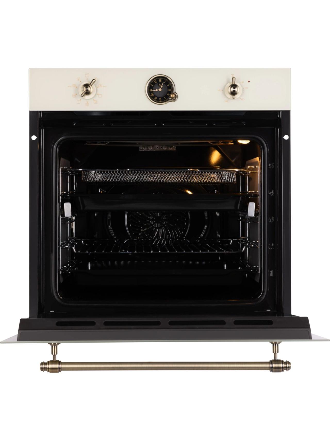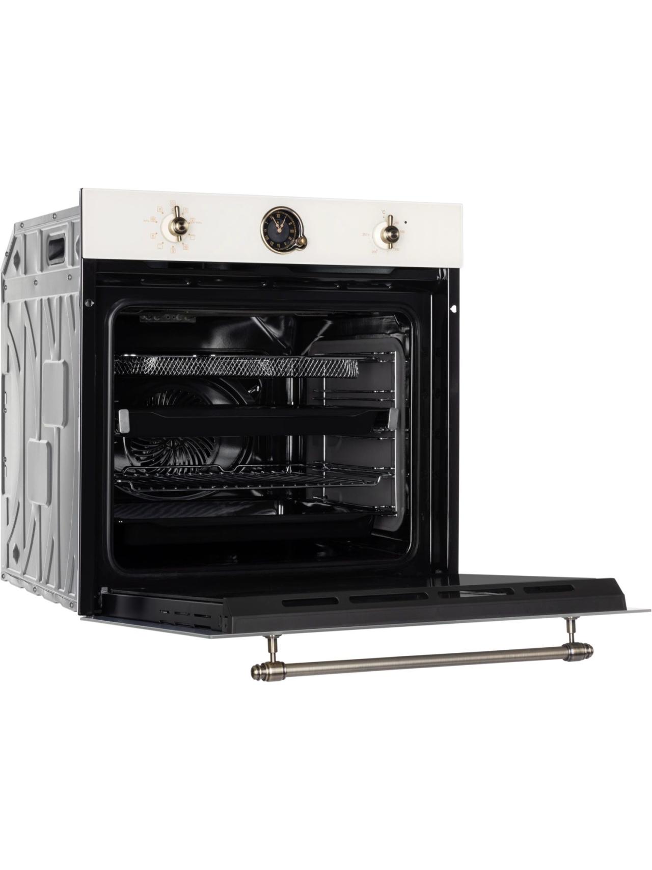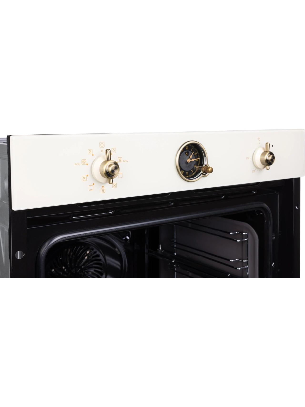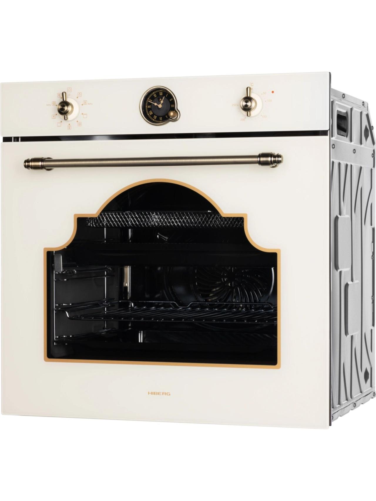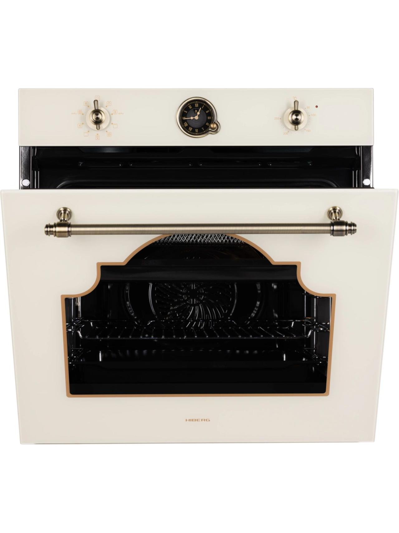 Встраиваемый духовой шкаф HIBERG VM 6392 YR создан для тех, кто ценит стиль и функциональность. Изысканное бежевое исполнение с декоративными поворотными переключателями и ручкой в цвете состаренной латуни гармонично дополняет кухни в стилях классика, винтаж или прованс. Стилизованные аналоговые часы с программатором помогают задать время приготовления и автоматическое отключение.